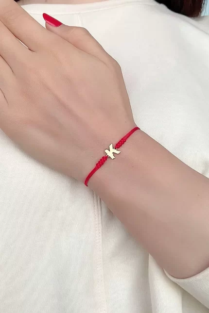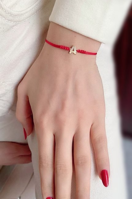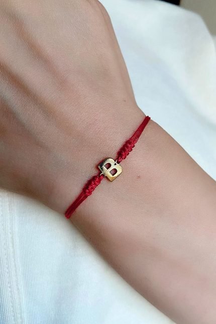 ₺750,00925 Ayar Gümüş Tasarım Mini Mini Altın Kaplama Kırmızı Ip Harf Şans Bileklik