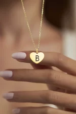 Kalplerle Yazılı Sevimli 925 Ayar Gümüş Tasarım 14K Altın Kaplama Kalp B Harf Kolye Takılarımız 925 ayar Gümüş ve altın kaplamadır.