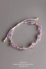 Ametist Doğal Taş Lila İp Örgü Bileklik