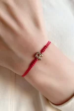 Sevimli Kalp Harfler 925 Ayar Gümüş Tasarım Altın Kaplama Kırmızı Ip Şans Bileklik