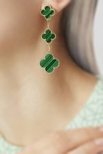 Yonca Şans Sallantılı Van Cleef Model Malakit Doğal Taş 925 Ayar Gümüş Çivili Küpe