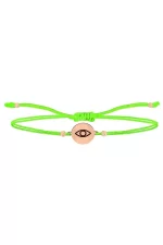 925 Ayar Gümüş Pembe Altın Kaplama Neon Yeşil Örgü ip Göz Detaylı Bileklik (Nazar)